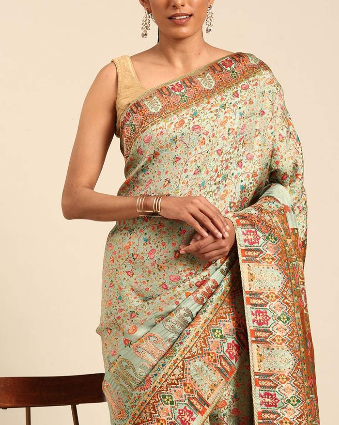 - The last image gives a detailed look of the blouse piece that comes with this saree (The blouse in the images is only for styling purpose)
