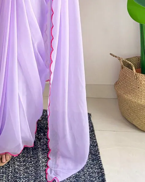 Women Georgette Saree with Scalloped Border
