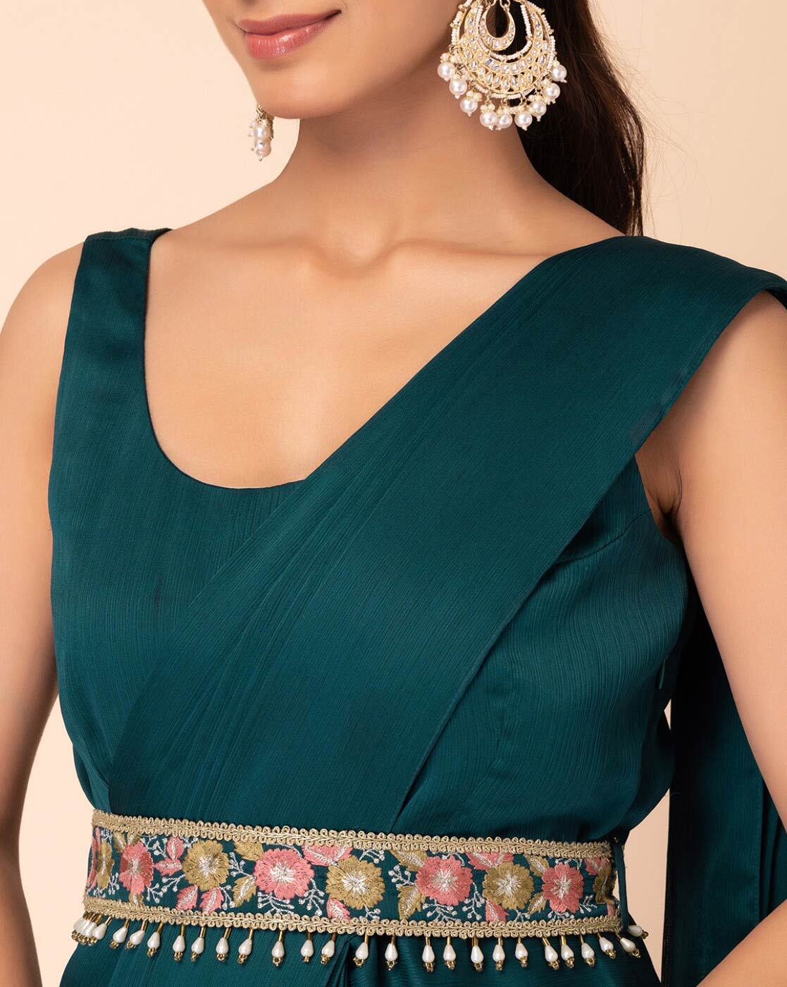 Women Ready to Wear Saree with Attached Blouse & Embroidered Belt