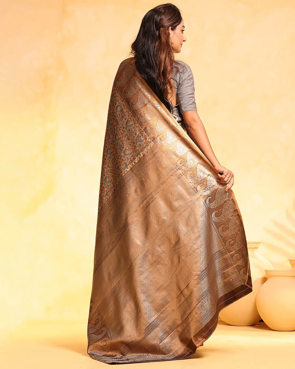 - The last image gives a detailed look of the blouse piece that comes with this saree (The model is wearing a blouse from our in-house wardrobe)